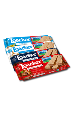 If you like to take life easy, you should defintely try the airy Loacker Sandwich wafers! They offer natural pleasure to aware connoisseurs, with their layer of the smoothest cream filling and exquisite ingredients, held by two light, crispy wafers, refined with a pinch of cocoa.